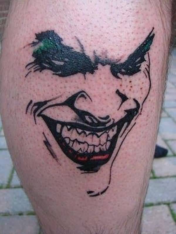 Seminato Black Ink 3D Joker Face Tattoo On Calf – Truetattoos