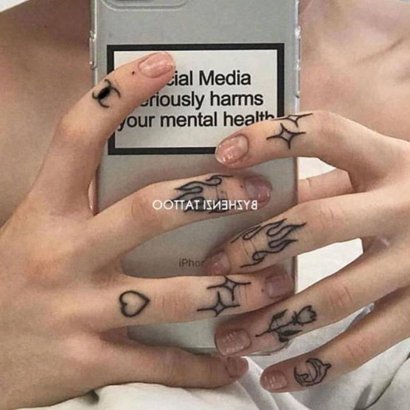 32. Original Hand-Painted Dark Style Flame Love Finger Tattoo Stickers Long-Lasting Waterproof Simple | Shopee Malaysia Gratis